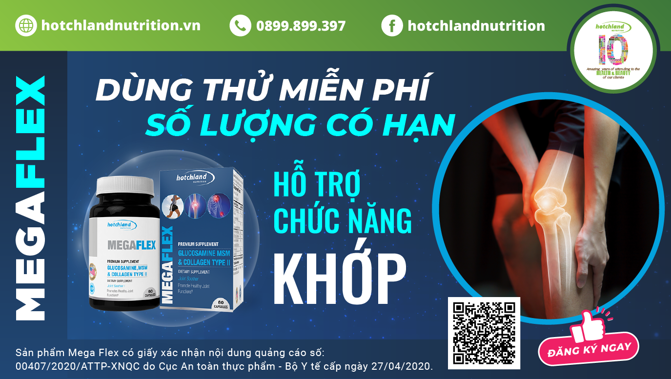 Hotchland Nutrition đang có chương trình tặng khách hàng dùng thử TPBVSK Mega Flex – Hỗ trợ phục hồi chức năng xương khớp miễn phí, số lượng có hạn.